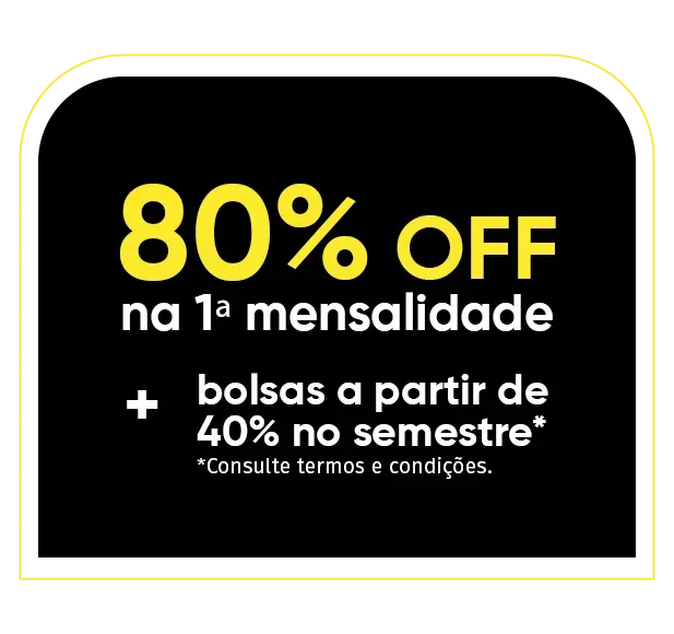 80% de desconto na 1ª mensalidade. E mais: bolsas a partir de